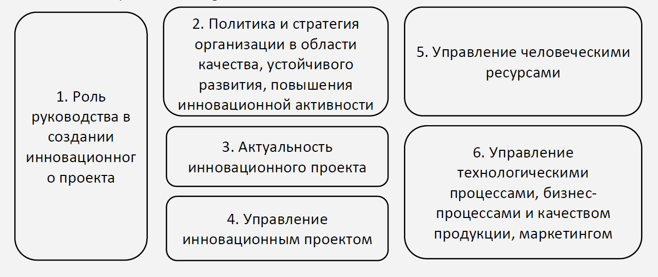 Группа критериев 1 – формирование возможностей организации создавать успешные инновационные проекты в области качества, инновационной активности, устойчивого развития:
